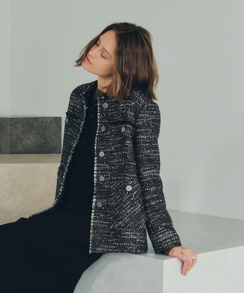 主役アウターとして活躍するツイードジャケット。すっきりとしたノーカラーと、程よいゆとりの着回しやすいシルエットがポイントです。大きなメタルボタンがクラシカルで上品なアクセントをプラス。ナチュラルな雰囲気のアイボリーと、スパンコールがさり気なく輝く華やかなブラックとの2色展開です。デイリーにも、オケージョンや華やかなシーンにも着こなせるおすすめの一枚です。透け感[なし]生地の厚さ[厚手]光沢感[あり]伸縮性[ややあり]裏地[あり]ポケット[あり]※モデル着用画像は、光の当たり具合で色味が違って見える場合がございます。※お使いのモニター環境によって商品の色味が違って見える場合がございます。-------------------------------------------●YECCA VECCA●(イェッカ ヴェッカ)「大人のハッピーモードな着映え服」毎日を自分らしく、ハッピーに過ごすことにポジティブな女性のためのリアルクローズ。キーワードは「遊び心のある、女性らしいモード服」でも「コンフォート」。都会的で女性らしいムードを大切に着ていて心地よく、気持ちが上向きになるような遊び心のあるデザインウェアをラインナップ。自分自身がわくわく出来る洋服で日常を最大限に楽しむ大人の為のスタイルを提案していきます。▼商品のお気に入り登録がおすすめです ▼商品ページ内のハートマークをクリック。完売時の再入荷や、最後の1点の通知、コーディネート画像がアップされたとき、お得なお値下げの際の通知を受ける事ができます。【お知らせ】ページでも通知が確認できます。-------------------------------------------