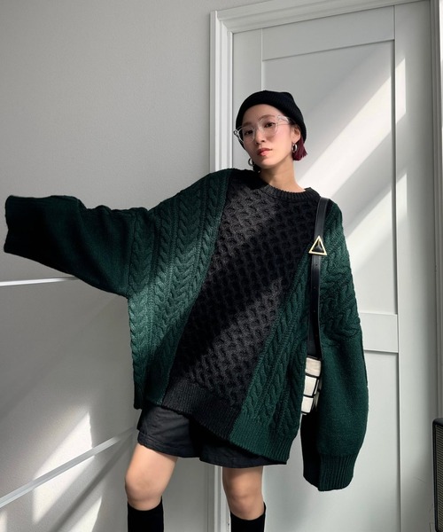 ざっくりとした立体的な編柄でハニカム編みとケーブル編みのバイカラーデザイン編みが目を惹くオーバーニット。ゆったりとしたビッグシルエットで、袖口もワイドにざっくりローゲージオーバーサイズに仕立てました。生地はやわらかく、着心地も抜群です。チクチクしないのも嬉しいポイント。ニットオンニットで、インにハイネックのインナーニットや、シアー素材のタートルネックトップスをインすると、トレンドライクな雰囲気のコーデが完成します。・CFT.original…CFT.オリジナル商品です。販売はCFT.のみとなります。CFT.タグ付。【CFT.(シフト)】CFT.(シフト)は、オーバーサイズやシアーなどの大人カジュアルなコーデが楽しめるブランドです。シルエットや素材感にこだわったシャツやカラーコーデアイテムを多数展開。「着た人が自分に自信を持てるような服作り」をモットーに2025年で10周年を迎え、2026年にはパリでのファッションショーへ出店予定。▼商品のお気に入り登録お気に入りアイテムの値下げ・再入荷・在庫1点などの通知を受け取ることができます。 ▼ブランドのお気に入り登録新商品や再入荷、セール、クーポン配布などお得な情報を受け取ることができます。※ご注意※※撮影の天候状況により、実際の商品の色味に若干の違いが発生する場合がございます。※他のキャンペーンにより、期間中に価格が変動する場合があります。※セールは予告なく終了させていただく場合もあります。