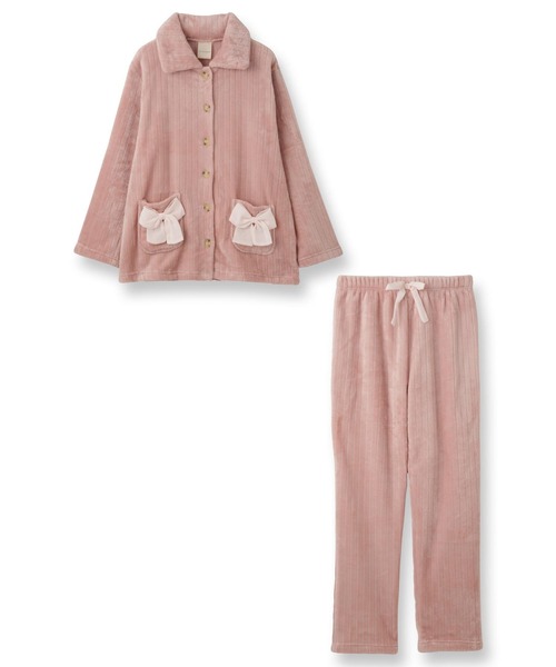 もこもこ パジャマ ルームウェア レディース 冬 あったか モコモコ リボン 着る毛布「メモリーフリース」