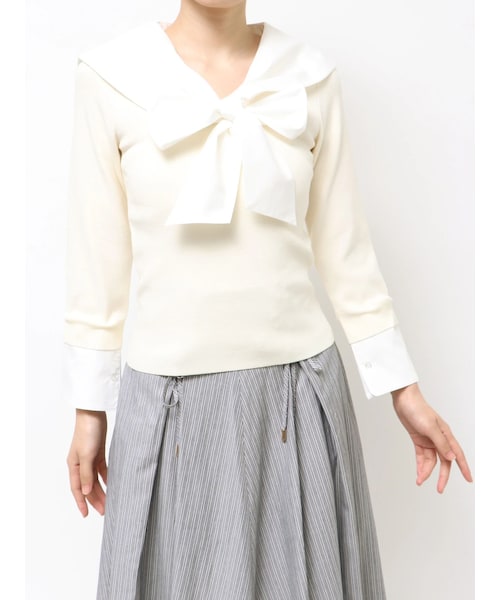 TONAL(トーナル)の「セーラードッキングニット(ニット/セーター・レディース・オフホワイト/グレー/ネイビー・M)」の6枚目の写真