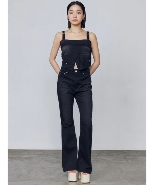 春から夏まで、着回し力抜群のデニムサロペット■デザイントップス部分はデニムパンツを上下逆にしたようなデザインで、モード感のあるEMODAらしい存在感のある1着です。ウエストのさりげない肌見せもポイントです。微ストレッチのデニム生地で程よく伸縮性もあり身体にフィットしてくれます。■スタイリング1枚ではもちろん、肌寒い時期はストラップシアートップスを合わせたスタイリングがおすすめ。足元はスキンラインバルキーサンダルと合わせて頂くと脚長効果も抜群です。※着用画像はフラッシュの加減で実際の製品と色味等が異なる場合がございますので、生地のズームアップ画像をご確認ください。※ご利用の端末画面の設定により実際の商品と色味が異なる場合がございます。【商品特徴】透け感:なし伸縮性:なし生地の厚さ:普通サイズ感:普通裏地:なしポケット:なし