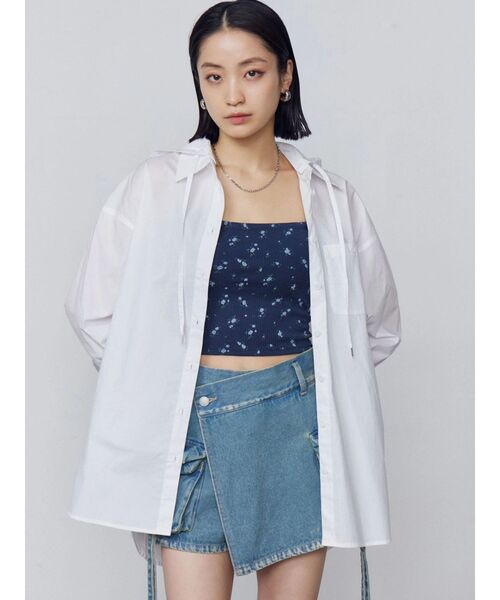 フード付きのオーバーサイズシャツ■デザインスピンドルを付けパーカーのようなカジュアルな雰囲気に仕上げています。胸ポケットには今季のemodaロゴを刺繍で入れポイントにしています。フードは取り外し可能です。■スタイリングヒップにかかる着丈で、足元にルーズベルトブーツを合わせミニワンピースのように着るスタイリングがイチオシ。肌寒い時期はバックレースアップショートブルゾンを上のに羽織ってフードを出すスタイリングがおすすめです。※着用画像はフラッシュの加減で実際の製品と色味等が異なる場合がございますので、生地のズームアップ画像をご確認ください。※ご利用の端末画面の設定により実際の商品と色味が異なる場合がございます。【商品特徴】透け感:なし伸縮性:なし生地の厚さ:普通サイズ感:ゆったり裏地:なしポケット:なし