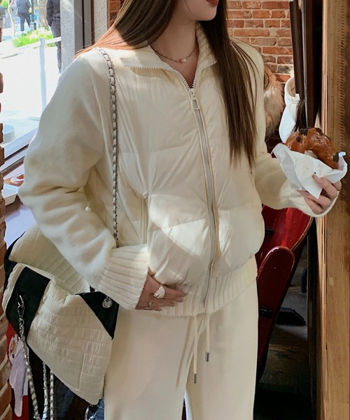 袖&裾のニット切り替えで、抜け感とメリハリを。■デザイン中綿入りのボディに、袖口と裾をニット素材で切り替えた異素材ミックスブルゾン。ふっくらとした中綿のボリューム感と、ニットの柔らかさが絶妙なバランス。裾と袖のリブニットがメリハリを生み、着膨れせずすっきりとした印象に。2サイズ展開で、ジャストでもゆるっとでも好みの着こなしが楽しめます。■素材表地は軽量で耐久性のあるポリエステル系素材、中綿入りでしっかり保温。袖・裾はニット素材で、肌当たりも優しくフィット感◎。異素材の組み合わせが、シンプルながらもこなれた印象に。■スタイリングデニムやカーゴパンツと合わせて、ストリート感のあるカジュアルスタイルに。スカートやワンピースと合わせて、甘辛ミックスな着こなしも◎。-----------------------------------------------【スタッフが着用しました!】身長:158cm普段着用サイズ:S~Mサイズ今回着用サイズ:FREEサイズ■着用感中綿入りでしっかり暖かく、軽量で動きやすい設計。袖口と裾のニットが冷気を防ぎ、快適な着心地をキープ。2サイズ展開で、体型や好みに合わせて選べるのも嬉しいポイント。-----------------------------------------------【お買い物をよりお楽しみいただく為に】▼お気に入り登録サイズ・カラーを指定して、♡マークをクリック![セール通知・ラスト1点の通知・完売アイテムの再入荷通知]を受け取ることができます。▼ブランドのお気に入り登録新商品や再入荷、タイムセールやクーポン等いち早くブランドのお得な情報を受け取ることができます。-----------------------------------------------※取り扱い上のご注意染色の特性上、発汗や摩擦により色落ちしたり他のものに色移りすることがありますのでご注意ください。韓国ファッション オフィスカジュアルガーリー大人カジュアル韓国ファッション秋服冬服