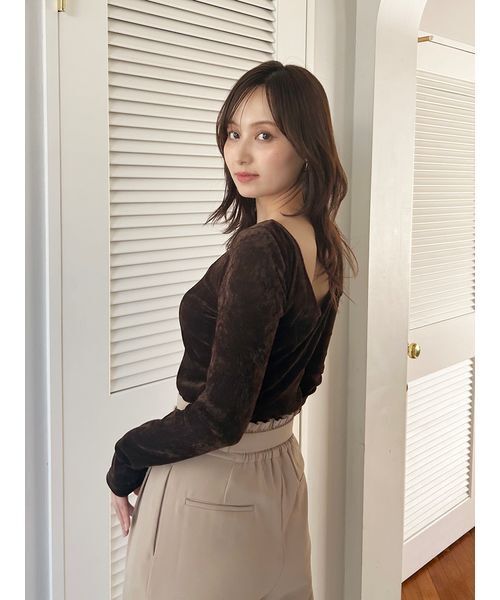 【1枚で着たり、レイヤードで着たり、カップイン付きで便利な華やぎベロアカットソー】【Design/Styling】エレガントな艶感とシアー感のある柔らかなベロアチュール素材を使用してお作りした、レイヤードスタイルに便利なカップインベロアカットソーが届きました。表生地には伸縮性があり着心地も抜群。薄軽素材なので、秋冬先取りアイテムとしても便利です。また、重たくなりがちな冬のレイヤードコーデにも抜け感をプラスします。カーヴィーな切り替えを入れボディラインに寄り添うフィット感のあるデザインで仕上げているので、タックインスタイルもすっきりキレイにキマります。短丈のカップインキャミがセットになっているので、インナーに困らず着用できます。オーバーサイズコートジャケット(SWFJ255069)合わせもおすすめです。【Fabric】クラシカルなブラック、スモーキーな色味のベージュ、チョコレートカラーのブラウンの3色展開です。透け感;ややあり伸縮性;ややあり光沢感;なし生地の厚さ;やや薄手【おすすめ骨格タイプ】■骨格ストレート■骨格ウェーブ■骨格ナチュラル※照明の関係により、実際よりも色味が違って見える場合があります。またパソコン・スマートフォンなどの環境により、若干製品と画像のカラーが異なる場合もございます。予めご了承ください。商品の色味は、商品単品画像をご参照下さい。 ※商品画像はサンプルのため、色味やサイズ等の仕様に変更がある場合がございますので、予めご了承ください。