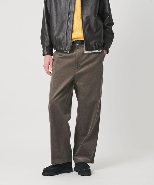 ワイドストレートのコーデュロイスラックス。気の利いたデザインで、コーディネートの主役に。■デザインノープリーツ仕様のワイドストレートスラックス。クラシックな印象を抑えるため、あえてタックを省いたデザインで、コーデュロイ素材ながらもクリーンで都会的なムードに仕上げました。ヒップからワタリ、裾にかけてゆとりを持たせたワイドストレートシルエットが、存在感のあるバランスを演出。素材の表情とシルエットの美しさが際立つ、コーディネートの主軸になる一本です。・シルエット:ワイド/ルーズ【NO.10】全体的に広めの幅感で、存在感のあるワイドシルエット。トレンド感を取り入れた着こなしにぴったりです。※【NO.1】~【NO.12】の数字が大きくなるにつれてワイド感が増す構成になっています。■素材キレイめな印象を引き立てる、細畝コーデュロイを採用。綿100%のしっかりとしたハリ感があり、ワイドストレートのシルエットを美しくキープしてくれます。素材・色・シルエットのバランスにこだわった、上品さと存在感を兼ね備えた一本です。■コーディネートノープリーツのワイドストレートシルエットには、ジャストサイズのトップスをタックインするコーディネートがおすすめ。ウエストまわりがすっきりと見え、シルエットの美しさがより際立ちます。シンプルながらもバランスの取れた、クリーンな大人のカジュアルスタイルに仕上がります。============================裏地:なし透け感:なし光沢感:毛並みの光沢感ありケア方法:手洗い可============================【注意事項】※商品に「取り扱い上の注意書き」、「洗濯表示」がございます場合は、使用前に必ずご確認ください。※商品画像は、光の当たり具合やパソコンなどの閲覧環境により、実際の色味と異なって見える場合がございます。あらかじめご了承ください。※商品の色味の目安は、商品単体の画像をご参照ください。店舗へお問い合わせの際は、全国のBEAUTY&YOUTH各店舗まで下記の品名/品番をお申し付けください。品名:SC FINE CORD WD NP 10 品番:12141000010