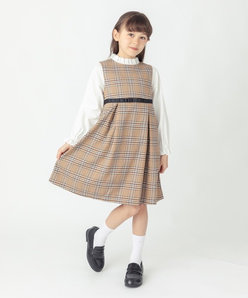 【マルチに活躍する華やかアイテム】チェック柄 レイヤード ワンピース 品番:241237005 ■デザイン トラディショナルなチェック柄が上品な印象を与える、清楚ワンピースが登場♪ 発表会やお食事、大切なお出かけなど、きちんとしたシーンに華やかさを添えてくれる一枚。 ■素材 「きれい見え」なのに軽素材で楽ちん♪ 型崩れしにくいのでお出かけ時に長時間着ても安心◎ ■機能 自宅で洗濯可能だから汚れを気にしすぎず着られる優秀ワンピ。 しかも、シワになりにくい素材でアイロン要らず。 お手入れが楽ちんだからママも嬉しい一枚です。 ============================== 裏地:胸元まで裏地あり 透け感:なし 伸縮:なし ケア方法:洗濯機洗い可、乾燥機不可 ============================== 【 ever closet -エバークローゼット- 】 60年以上続く子ども服メーカーから生まれたブランド""ever closet"" 老舗メーカーが積み重ねてきた技術と""本当に良いものを作る""という揺らがぬ想いでトレンドを取り入れた上質なお洋服を皆さまにお届けします。 ▼商品のお気に入り登録 ♡をクリック! 完売カラーの再入荷通知や、ラスト1点の通知、セールの通知をお知らせします。 ▼ブランドのお気に入り登録 新商品や再入荷、クーポンやセール情報など、いち早くお得な情報を受け取ることができます。 ※モデルが着用している画像は、照明や日光などの撮影時の環境により実物と異なる色味になる場合がございます。 商品単体の平置き画像を実物に近いお色味になるよう努めておりますので、お色味のご確認は平置き画像をご参照くださいませ。 ※お使いのモニター環境によっても実物のお色味と異なって見える場合がございます。予めご理解の程よろしくお願いいたします。"