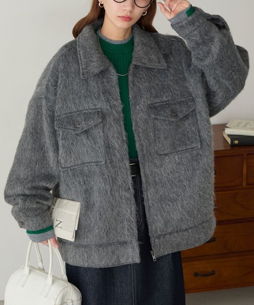 柔らかなシャギー素材がニュアンス感抜群冬の空気になじむ2wayジャケット・ふんわりとした素材感が魅力のBIGポケットジャケット・軽くてあたたかいシャギーメルトン生地・ゆったりシルエットでリラックス感とカジュアルスタイルを叶える・大きめの襟は立てても着られる2WAY仕様・胸元のフラップポケットがアクセント・ドロップショルダーでリラックス感◎・どんなボトムスとも合わせやすい着回し力・デイリーからお出かけまで幅広く活躍-----------透け感…なし伸縮性… なし裏地… あり光沢感…なし生地の厚さ…厚手洗濯方法…家庭での洗濯禁止----------■取り扱い方法この製品は、素材の特性上、着用やクリーニングなどの繰り返しの着用や洗濯により、摩擦や若干の毛乱れ・毛羽抜けが生じることがあります。バッグなどとの接触にもご注意ください。毛玉ができた場合は、引っ張って取ろうとせず、毛玉取り器や小さなハサミなどでお手入れしてください。※取り扱いについては、商品についている品質表示でご確認ください。※撮影画像は、光の当たり具合で色味が違って見える場合がございます。また、ご覧になっているデバイスやモニター環境によって、実際の色味と多少異なって見える場合がございますので予めご了承をお願い致します。■スタッフ着用レビュー162cm / FREEサイズ着用全体的にゆったりとしたシルエットで、メンズライクな雰囲気の1枚です。ヒップがしっかり隠れる丈感に広めのアームホールで厚手のニットの上からでも楽に羽織れます。デニムやスラックス、スカートとも相性が良く、幅広いシーンで活躍しそうです。≪お買い物をお楽しみいただくために≫▼商品のお気に入り登録完売カラーの再入荷通知や、ラスト1点の通知、セールの通知も受け取ることができます。▼ブランドのお気に入り登録新商品や再入荷等、いち早くブランドのお得な情報を受け取ることができます。
