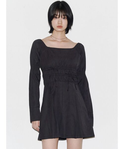フロントのギャザーリボンデザインがポイント■デザインリボンデザインがポイントのロングスリーブワンピース。ギャザースリーブや二の腕のシャーリングデザインで女性らしい印象にしています。無地は少し起毛感のあるピーチスキン素材を使用しており上品さがあります。チェック柄はネル素材で秋冬らしい印象に仕上げています。裏地もつけているので防寒効果もあります。ブラック=無地グレー・ブラウン=チェック柄■スタイリング足元はスクエアフィットロングブーツやルーズフレアカバーフィットブーツがイチオシ。EMODA人気の美脚ブーツを合わせて頂くと、よりスタイルアップ効果があります。女性らしい印象なので、カジュアルなカバータンクブーツとのスタイリングバランスもおすすめです。※着用画像はフラッシュの加減で実際の製品と色味等が異なる場合がございますので、生地のズームアップ画像をご確認ください。※ご利用の端末画面の設定により実際の商品と色味が異なる場合がございます。【商品特徴】透け感:なし伸縮性:なし生地の厚さ:普通サイズ感:普通裏地:ありポケット:なし