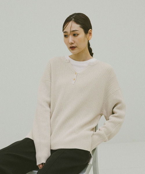 変形リブとVネックでこなれ見え ・機能 マシンウォッシャブル 毛玉になりにくい ・デザイン 変形リブで表面感のある素材のキーネックプルオーバー。 小さめのメタルボタンがアクセント。 程よいゆったりとしたシルエットで、体型カバーを叶えてくれます。 両脇のスリットで動きが出て、重ね着もしやすいです。 ・おすすめスタイリング 少し縦長のシルエットなので、フレアパンツと合わせると今年らしさが出ておススメです。 ----------------------------- 透け感:やや透ける 伸縮性:あり 生地感・厚さ:普通 裏地:なし ----------------------------- ・アイボリーで計測しています。 (こちらは参考情報となります。カラーにより多少の誤差がございます。) ・こちらの商品はGLOBAL WORK独自の採寸方法となっています。本サイトのサイズガイドと採寸方法が異なる場合がありますのでご了承ください。 ・お買い物が便利になる機能がたくさん ・商品のお気に入り登録 完売アイテムの再入荷通知、ラスト1点、またクーポンやお値下げ通知をお知らせします。 ・ブランドのお気に入り登録 新商品や再入荷のお知らせ等、いち早くブランドのお得な情報を受け取ることができます。 ぜひご登録ください。