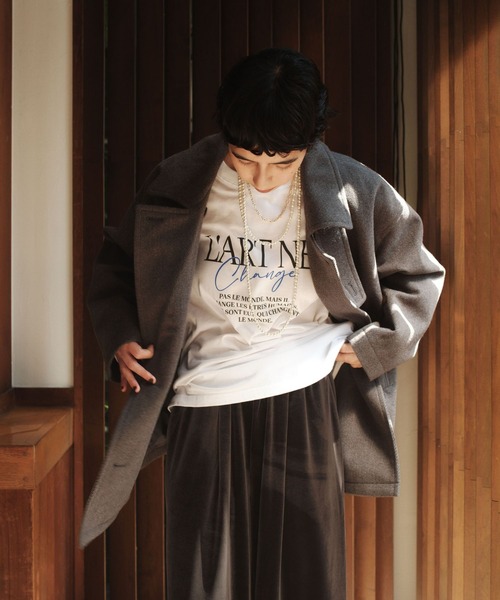 気分に合わせて自由自在な着こなしを 軽量で羽織り心地抜群のピーコート ーーー 【素材】 軽量で羽織り心地のいい素材を使用。 内側の生地も滑らかなので、インナーもごわつかず着心地のいいアイテムです。 【デザイン】 スタンドカラーにもアレンジできる軽量ピーコート。 重量感はありますが見た目よりも軽く、寒い冬も暖かくお過ごしいただけます。 ラグランスリーブでアームホールがゆったりとしているので、厚手のニットも楽に着込むことが出来ます。 また、ハーフ丈なので動きやすく、通勤やデイリー使いに最適です。 ーーー 【スタイリング】 ベーシックなスタイリングに羽織るだけでこなれ感が出ます。 また、気分に合わせてスタンドカラーとしてもお楽しみいただけます。