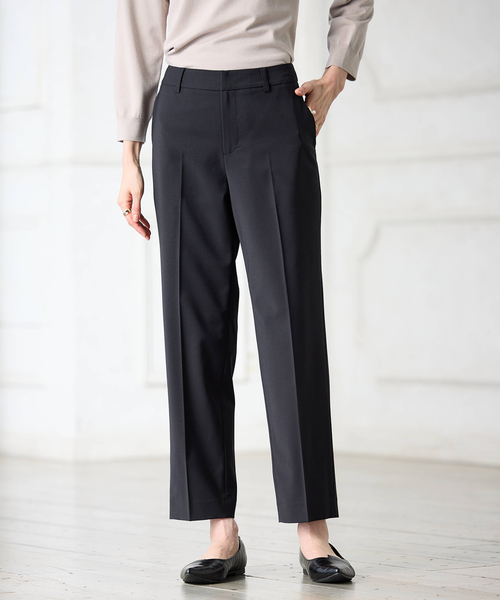 ★2026/1月 春の新色ベージュとネイビーが仲間入り♪ 《美しいラインで品よく穿けるテーパードパンツ》 人にも地球環境にも優しく、高級感のある風合いが魅力のGREENWOOL素材を使用。 ほどよい伸縮性と上質な質感で、快適さときれいめな印象を兼ね備えています。 腰回りはすっきりと仕上げ、裾にかけて細くなるラインが美しいシルエットを演出。 オフィスにもデイリーにも活躍する万能アイテムです。 【デザインポイント】 ・お仕事から食事会、セレモニーまで対応できる端正なデザイン。 ・適度なゆとりをもたせ、美シルエットと着心地を両立しました。 ・同素材を使用した【ファーストライン】ストレッチカラーレスジャケット(検索番号:355609-10)でセットアップでの着用が可能です。 【GREENWOOL】 ファインメリノウールとリサイクルポリエステルを混紡した、人と地球環境に優しい素材です。 繊維が細くしなやかな為、肌触りが非常に良いファインメリノウール。 ウールには寒い時は暖かく、暑い時は涼しく感じる自然の温度調整機能があります。 【ファーストライン】 A/C DESIGN BY ALPHA CUBICの中でも特に上質な素材を使用した特別感のあるシリーズ。 長く愛用できる普遍的で洗練されたデザインをぜひお楽しみください。 ----------商品情報---------- [着用目安]春、夏、秋、冬、通年 [裏地]なし [透け感]なし [伸縮性]あり [ポケット]あり ---------------------------- 【サイズバリエーション】 ・61cm(9号/Sサイズ相当) ・64cm(11号/Mサイズ相当) ・67cm(13号/Lサイズ相当) 【着用シーン】 入学式、入園式、卒業式、卒園式、授業参観、セレモニー、新生活、就活、リクルート、オケージョン、フォーマル、結婚式、二次会(2次会)、披露宴、お呼ばれ、パーティー、食事会、同窓会、発表会、通勤、仕事、デイリー、ショッピング、女子会、旅行、行楽、お出かけ、ディナー、ランチ会、記念日、デート、学校行事、オフィスカジュアル 【ブランド紹介】 《A/C DESIGN BY ALPHA CUBIC(エーシーデザインバイアルファキュービック)》は通勤時やオフィスで、学校行事や“おうちの用事”などのオケージョンで、女性が気張らずに心地良くいるための服を提案するブランドです。 【お買い物をお得にもっと楽しんで頂くために】 ▼商品のお気に入り登録▼ 完売カラーの再入荷通知や、ラスト1点の通知、プライスダウンしたセール通知も受け取ることができます。 ▼ブランドのお気に入り登録▼ 新作や再入荷等、いち早くブランドのお得な情報を受け取ることができます!