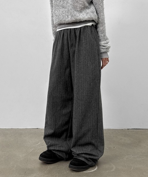 - BLACKUP PROJECT -▼Item Point- ピンストライプ柄- ワイドフィット- ストレートシルエット- フルレングス(丈長め)- ウエストゴム/紐仕様- ウールライクな起毛素材▼Item Infomation裏地:なし厚さ:やや厚手季節:秋 冬透け感:なし伸縮性:なし※±1~3cmの誤差が出る場合がございます。▼Washing Tip- 単独手洗い、中性洗剤使用、ぬるま湯洗濯またはドライクリーニング。- 水洗い可能ですが、高温に弱いため煮洗いや高温アイロンは避けてください。- 洗濯時に色落ちや生地の変形が生じる場合があります。- 漂白剤、乾燥機のご使用はお避けください。BLACKUP | ブラックアップ#Y2K#ストリート#シック#ジェンダーレスブラックアップは、韓国現地の最新トレンドが揃うファッションブランド。SNSのフォロワー数は33万人を超え、韓国、日本をはじめ海外のファンからも大きな支持を得ている。トレンドを取り入れたシンプルながらクールなスタイル提案が魅力。
