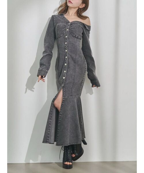 <商品紹介>カジュアルと女っぽさを兼ね備えたフェミニンなワンピースです。 膝から美しく広がるマーメイドシルエットやヘルシーな肌見せのワンショルデザインが目を惹来ます。ボディラインにフィットし、ストレッチの効いたデニム素材で仕上げました。フロントのシルバーボタンがアクセントを加え、縦の切り替えラインを強調してスタイルアップ効果も抜群に◎今季のレースアップブーツサンダルを合わせたコーデがオススメです。----------------------------------------------♡商品のお気に入り登録完売カラーの再入荷通知や、ラスト1点、セールの通知をお知らせ致します。♡ブランドお気に入り登録新商品や再入荷など、いち早くブランドの情報を受け取ることができます。----------------------------------------------※サイズは、実寸サイズを測っているため多少誤差がでる場合があります。※重量は目安として、参考にして下さい。※商品画像は着用イメージです。 光や角度により、実物と色味が異なる場合がございます。 商品の撮影はサンプルで行っている為、カラーやサイズ等に変更がある場合がございます。 ご覧のモニター環境により実際の商品と多少色味が異なって見える場合がございます。