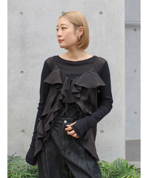 夏に人気だったフリルキャミが冬素材になって再登場 ■デザイン 夏らしい楊柳素材から、冬らしいフィブツイル生地にブラッシュアップし、レースを追加することでより冬らしいルックに。 上品なツヤが高見えするポイントです。 ■生地感 フィブツイル生地を使用。 上品な表面感とツヤが特徴です。 ■サイズ感 冬のニットやスウェットとも合わせやすいようにアームホールとバストは少し大きく変更しています。 ■スタイリング ウォッシャブルタートルニット(品番:112552659001)との合わせが新鮮でおすすめ。 ボトムスはデニム合わせが今っぽいです。 ・・・・・・・・・・・・・・・・・・・・・・ 透け感:なし 裏地:なし 伸縮性:なし 光沢感:なし 生地の厚さ:普通 ・・・・・・・・・・・・・・・・・・・・・・ ※商品画像はサンプルのため、色味やサイズ、素材の混率等の仕様に 変更がある場合がございます。予めご了承ください。 ※生地寄り画像を正規の商品の色味に近づけております。 ■商品のお気に入り登録 再入荷通知やラスト1点、お得なプライスダウンの情報も受け取ることができます。 ぜひご登録ください◎