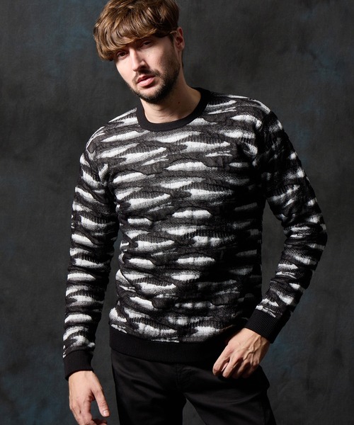 ■デザイン カモフラブリスタージャカードクルーネックプルオーバーニットになります。 ブリスター編みでカモフラ柄を表現することで立体感が生まれ、目を惹くニットに仕上げています。 ■サイズ ほどよいリラックスフィットで着心地抜群。 ウエストにやや絞りを入れたシャープなシルエットも魅力です。 ■素材 表にポリエステルレーヨンナイロンの3者混糸、裏に綿タッチポリエステル糸を使用することで、艶のあるカモフラ柄を表現しつつ、温かみのあるニットに仕上げています。 またブリスタージャカード編み機で編み上げることでカモフラ柄が立体的に表現されています。 伸縮性:あり 生地の厚さ:やや厚い ■注意点 生地の性質上、摩擦によりピリングが起こることがあります。 着用時及びクリーニング等の取り扱いに御注意ください。 ※画像の商品はサンプルです。 実際の商品とは仕様・加工・サイズ・素材が若干異なる場合がございます。 ※掲載画像の商品の色味は、撮影場所や光の当たり具合などにより色味が異なって見える場合がございます。 商品の色味は、生地アップの画像をご参照ください。 また、お客様のお使いのPC・スマートフォン等のモニター環境などにより色味が異なって見える場合がございます。 予めご了承の上ご注文ください。 ※着用モデル身長182cm B89cm W75cm H90cm 着用サイズ48