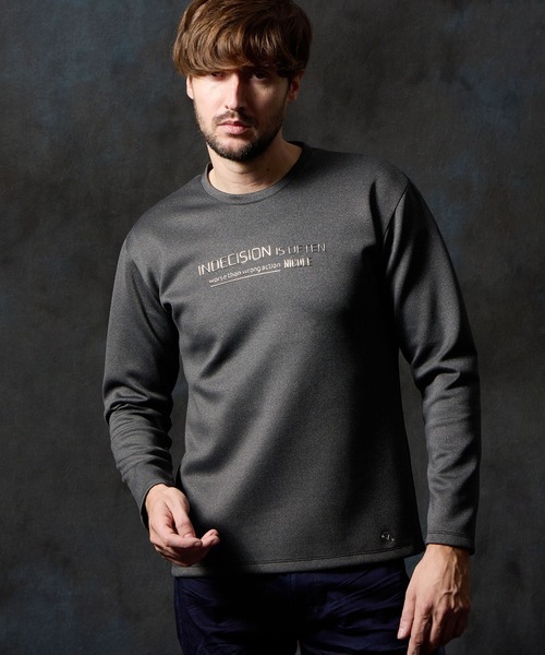■デザイン シャープな印象をあたえるメタルジェルプリントが特徴のクルーネック長袖Tシャツになります。 生地の光沢と立体的なメタルジェルプリントの相性も良く、高級感のあるTシャツに仕上がりました。 ジャケットを羽織っても様になるTシャツです。 (和訳) 決断しないことは、ときとして間違った行動よりたちが悪い。 ■サイズ ほどよいリラックスフィットで着心地抜群。 ウエストにやや絞りを入れたシャープなシルエットも魅力です。 ■素材 シルエットを綺麗に見せる張り感とストレッチ性に優れるポンチ素材を採用しています。 蓄熱保温加工を施しているので、寒い時期にインナーとして重宝します。 伸縮性:あり 生地の厚さ:程よい厚み 生地加工:蓄熱保温加工 ロゴ加工:メタルジェルプリント加工 ■注意点 生地の性質上、摩擦によりピリングが起こることがあります。 着用時及びクリーニング等の取り扱いに御注意ください。 プリント部分にアイロンをあてないで下さい。 洗濯の際は裏返し、水洗い(手洗い)して下さい。 また、プリント部分の揉み洗い、ドライクリーニングはお避け下さい。 ※画像の商品はサンプルです。 実際の商品とは仕様・加工・サイズ・素材が若干異なる場合がございます。 ※掲載画像の商品の色味は、撮影場所や光の当たり具合などにより色味が異なって見える場合がございます。 商品の色味は、生地アップの画像をご参照ください。 また、お客様のお使いのPC・スマートフォン等のモニター環境などにより色味が異なって見える場合がございます。 予めご了承の上ご注文ください。 ※着用モデル身長182cm B89cm W75cm H90cm 着用サイズ48
