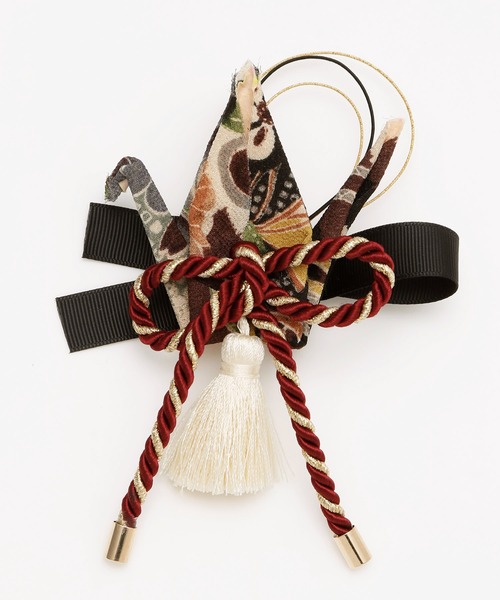 折り鶴髪飾り ちりめん生地の折鶴に、水引や結び紐を組み合わせた豪華な髪飾り。 クリップ仕様で、お好みの位置に着けられます。 特別な「ハレの日」におすすめのヘアアクセサリー。華やかなヘアアレンジに◎ ◆カヤ◆ 古くから伝わる日本の伝統と新しい文化の融合。 「新しいカタチの日本」に出会える倭物ブランド【カヤ】 「文明開化」をテーマに、倭モダンで色彩あふれる刺激的な和雑貨を提案していきます。 ※こちらの商品は1点1点職人による手作りとなります。その為、生地の取り方により柄の配置や形・色合いなど若干個体差がございます。(画像は一例です。)あらかじめご了承ください。 Amina Collection Co.,LTD.