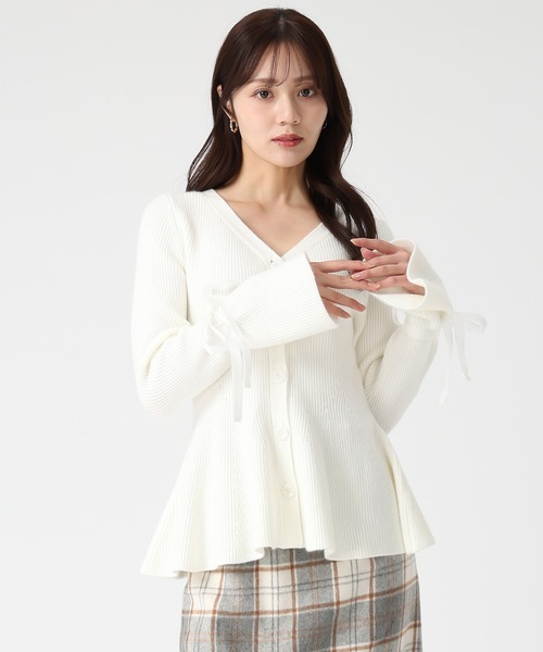 ベロアリボンがアクセントになるペプラムニット。裾に向かってふんわりと広がるシルエットで、美しいラインを演出します。なだらかなVネックの首元がすっきりとした印象をプラス。タイトスカートやパンツと合わせた着こなしがおすすめです。■fabric透け感[無し]裏地[無し]伸縮性[有り]生地の厚さ[普通]■design肌に優しい、温かみのある柔らかい糸で仕立てたペプラムニット。ほっこりとした素材の風合いが冬らしく、シーズンムードを高めてくれます。袖はベロアリボンを施し、アクセントを効かせました。顔まわりをシャープに見せるVネックもポイント。タイトスカートや、ワイドパンツはもちろん、今季はミニボトムとのスタイリングも新鮮でおすすめ◎。★《お気に入り登録》でお得な情報をGET★・「商品のお気に入り登録」で再入荷通知やラスト1の通知、セールやクーポンの通知も受け取ることができます!→ハートマークをクリック・「ブランドのお気に入り登録」で新商品や再入荷など、お得な情報を受け取ることができます!