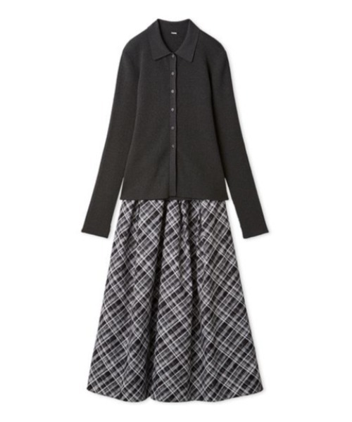 【トレンドのポロ襟ニットと、きれいめフレアスカート。2枚セットで好バランスのスタイリングが完成!】【Design/STyling】昨年度も大好評だった、ポロ襟のニット×フレアスカートの2枚セットアイテムをバージョンアップ。ホリデーシーズンにぴったりのスタイルに仕上げました。スタイリングに悩まずに、バランスのよいコーディネートが完成する、忙しい大人にもうれしいセットです。それぞれのアイテムも完成度が高いので、単品でも大活躍してくれます。ニットトップスは、程よい肉感とラメ糸でリッチなムード。綿密なサイジングで、フレアスカートとのバランスがよく見えるようにデザインしています。前を閉じてプルオーバーのように着ても、前を開けてカーディガンのようにも着こなせるので、単品でも応用範囲の広い一枚です。スカートは、光沢感がきれいなモードな印象のデザイン。ハリのある生地にタックとギャザーを寄せてフレアスカートにすることで、ドラマティックなセットアップになるように仕上げています。ウエストはゴムで穿きやすいのもうれしいポイント。【Fabric】トップスは、上品なラメ糸を使用した、適度な肉感のある編み地。再生繊維を使用したリッチな質感です。スカートは、コットン混のツヤとハリのある素材。ウエストのゴム部分にはグログランテープを使用しています。カラーは3色をご用意。白いボトムでモードなモノトーンにまとめた<BLK>、トラッドカラーが今年らしくて新鮮な<BRW>、トップスはグレー、ボトムはモノトーンのチェックを合わせた<CHECK>で展開しています。※照明の関係により、実際よりも色味が違って見える場合があります。またパソコン・スマートフォンなどの環境により、若干製品と画像のカラーが異なる場合もございます。予めご了承ください。商品の色味は、商品単品画像をご参照下さい。 ※商品画像はサンプルのため、色味やサイズ等の仕様に変更がある場合がございますので、予めご了承ください。