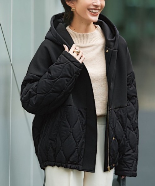 キルティング、 まさかの 上品な一面も きれい見えするダンボール素材と暖かなキルティングをベストバランスで切り替え。 計算ずくのゆったりシルエットでカジュアルな抜け感と大人のきちんと感を両立。 ※フェリシモの商品には、紐などでくくられている紙タグは付属しておりません。