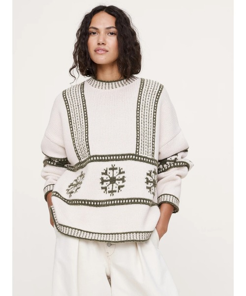 JAPAN EXCLUSIVE FIT 日本人の体形に合わせたサイズです。 アーカイブで見つけたヴィンテージサンプルのスノーフレークモチーフを再解釈。 暖かいウールとコットンをブレンドした糸で編み上げ、寒い季節に活躍する一枚に仕上げました。 モダンなスキーリゾートの雰囲気を漂わせるデザインです。 オーバーサイズフィット: 肩、胸、ウエストにかけてゆったりめ、ドロップショルダー シーム クルーネック 裾はストレート *商品タグに記載の価格とサイト上の販売価格が異なる事があります。 ノルディック ニット 【バナナ・リパブリック】 -バナリパ- BANANA REPUBLICは1978年にサンフランシスコで創業したグローバルブランド。 上質な素材使いを特長とした上品で汎用性のあるワードローブを提供しています。 ※商品画像は、光の当たり具合やパソコンなどの閲覧環境により、実際の色味と異なって見える場合がございます。予めご了承ください。