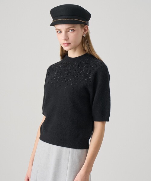 【Bianco Brillante】ふんわり柔らかく暖かいニット地にミシン刺繍でリップル(さざれ石)の様にビーズを散らしました。ふわふわの表面にミシンでキュッと留め付けてあるので、表にもステッチが見え星空のようなイメージにも。ビーズは透明感のあるものとカットの違う2種類を使い、立体感と強弱を付けています。散らし方もグラデーションをかけこだわりました。摩擦が気になる袖下はビーズを付けず仕上げています。肘上の半袖が短か過ぎない上品丈のプルオーバー。胸元のみに散らしたビーズディテールが華やかなトップスは着席時のシーンにもピッタリ。5分袖のプルオーバーですが、暖かい室内では1枚でも過ごせるので重宝しそう。シリーズのカーディガン(品番10261816020)とアンサンブルでの着用がお勧めです。【付属】なし【裏地】なし【透け感】なし【開き・留め仕様】なし【伸縮性】あり【ケア方法】クリーニング【着用感・生地の厚さ】やや厚め【Holiday Collection 2025 "Bianco Brillante"】澄みきった光に包まれてー。柔らかさの中に凛とした強さを宿し、繊細な素材や構築的なフォルムが、その存在をより美しく映し出す。透明感のあるトーンに、穏やかな華やぎと知的なモードを重ねて。静寂のなかに確かな存在感を放つ、ANAYIの新しいエレガンス。model:174cm 着用サイズ:38【ANAYIサイズ表】34サイズ:5号 XSサイズ相当36サイズ:7号 Sサイズ相当38サイズ:9号 Mサイズ相当・「商品のお気に入り登録」や「ブランドのお気に入り登録」で新商品や再入荷通知、セール通知などのお得な情報を受け取ることができます。・照明の関係により、実際よりも色味が違って見える場合がございます。またパソコン・スマートフォンなどの環境により、製品と画像のカラーが異なる場合もございます。予めご了承ください。