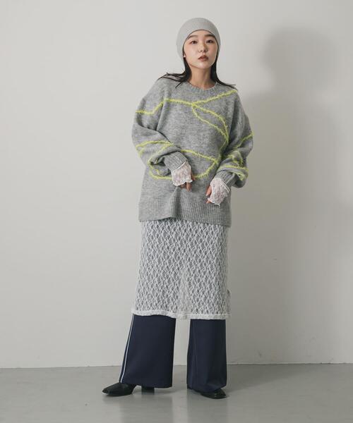 【やみつき肌触り。アートなラインデザインニット】・もちもちのニット素材で、やみつきになる肌触り・シャギー素材の曲線ラインが、着こなしにアートな個性をプラス・ややゆったりとしたサイズ感で、幅広いスタイルにマッチもちもちとした肌触りが心地良いニットプルオーバー。シャギー素材で描かれた曲線的なラインが、シンプルながらも目を惹くアクセントになり、アーティスティックな雰囲気を演出します。ややゆったりとしたサイズ感なので、体型を拾いすぎず、リラックスして着用できるのも魅力。シンプルなボトムスと合わせるだけで、洗練されたスタイルが完成します。【2025 Autumn/Winter】【25AW】※この商品は、ピリングができやすい素材を使用しています。発生したピリングは手でむしり取ると毛羽立ちや糸切れなどの原因になりますので、小バサミなどを使い元糸を傷つけないようにひとつひとつ取り除いてください。総重量 : 約370g※商品画像は、光の当たり具合やパソコンなどの閲覧環境により、実際の色味と異なって見える場合がございます。予めご了承ください。※商品の色味の目安は、商品単体の画像をご参照ください。▼お気に入り登録のおすすめ▼お気に入り登録された商品は、マイページにて現在の価格情報や在庫状況の確認が可能です。お買い物リストの管理にぜひご利用ください。素材感透け感 : ややあり(IVORY)伸縮性 : あり裏地 : なし光沢 : なしポケット : なしone