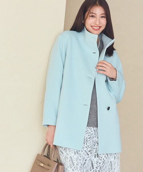 【デザインポイント】人気のコートにミドル丈の新デザインが登場です。良質なウールならではのしなやかさと着心地の軽さはそのままに、より着回しのしやすい丈感に仕上げました。Iラインを意識したシルエットは、着こめるゆとりをもたせつつすっきり目に見えるようこだわっています。顔回りから少し余裕を持たせたスタンド衿と、釦アクセントがポイントのコートです。【スタイリングポイント】パンツだけでなくスカートにも合わせていただきやすい丈感です。汎用性が高くキレイ目からカジュアルまで合わせていただけます。【素材ポイント】Super100 s原料を100%使用したビーバー素材になります。ラムウールをブレンドする事で従来のウール100%の素材よりもソフトな毛質が特徴です。尾州地区のウール素材の加工場で日本で最高レベルの品質を持つ「ソトー」の持つ特殊起毛加工「シャルム」加工を施しています。糸に大きなダメージを与えることなく繊細な起毛を施すことで良質さを高めた拘りの素材です。※照明の関係により、実際よりも色味が違って見える場合があります。また、パソコン・スマートフォンなどの環境により、若干製品と画像のカラーが異なる場合もございます。モデル情報:身長170cm B74 W60 H86 着用サイズ:38(M)店舗へのお問い合わせ商品番号:127-94124●製品寸法:03(XXXS):着丈68cm B92cm 袖丈52cm 肩幅40cm05(XXS):着丈69cm B95cm 袖丈53cm 肩幅41cm13(LL):着丈75cm B125cm 袖丈56cm 肩幅51cm15(3L):着丈75cm B129cm 袖丈56cm 肩幅52cm19(5L):着丈77cm B137cm 袖丈55cm 肩幅53cm36(S):着丈73cm B110cm 袖丈55cm 肩幅46cm38(M):着丈74cm B113cm 袖丈56cm 肩幅47cm40(L):着丈75cm B116cm 袖丈57cm 肩幅48cm備考:重量:38(M)約725g