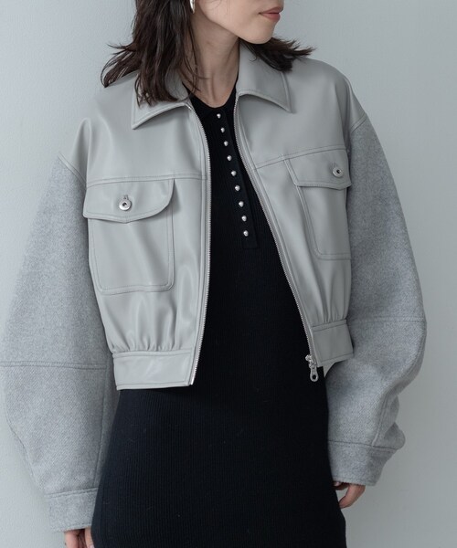 Design Point モードなデザインが目を惹くコントラストブルゾン。 ボディーに合成皮革、袖にウール混の異素材ミックスで、モードな雰囲気を醸し出します。 ショート丈スタイルをスマートに見せつつ、ゆったりとしたシルエットが動きやすさを確保します。 Styling Point ベーシックなインナーとワイドパンツ、ロングタイトスカートと合わせることでエッジの効いたスタイルに。 コーディネート次第でカジュアルにもドレッシーにも引き寄せるアイテムです。 Fabric Point 身頃にソフトな合成皮革、袖にメルトン素材を使用したハイブリットデザイン。 ***************************** 気になるアイテムは【お気に入り登録】がおすすめ! 気になるアイテムのページにある「ハートマーク」をクリックして簡単に追加できます。 登録すると、再入荷通知やお値下げ情報をメルマガにてお知らせします。 マイページにてお気に入り一覧もチェックできます。 ***************************** ※照明の関係により、実際よりも色味が違って見える場合があります。また、パソコン・スマートフォンなどの環境により、若干製品と画像のカラーが異なる場合もございます。 店舗へのお問い合わせ商品番号:523-44008 ●製品寸法: 34(S):着丈46cm B119cm 袖丈54cm 肩幅52cm 38(M):着丈47cm B122cm 袖丈55cm 肩幅53cm 備考: