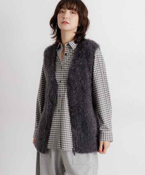 トレンド感のあるダブルジップデザインカジュアルから綺麗めまで幅広い着こなしを楽しめるニットベストーーー【素材】毛足の長いフェザーヤーンを使用。ソフトタッチでフェアリーな風合いが特徴です。【デザイン】5ゲージで作成されたダブルジップデザインにニットベスト。ボリュームのある身頃にメタルファスナーがすっきりとしたクリアな印象に◎合わせるアイテム次第でカジュアルにも綺麗めにも着こなせるので、今季一枚持っておくと重宝します。トップス ベスト ジレ ファー フェイクファーーーー【スタイリング】裾側を開けて抜け感を出した着こなしがおすすめ。綺麗めパンツに合わせたマニッシュコーデや、ねろースカートに合わせた大人フェミニンコーデも素敵です。