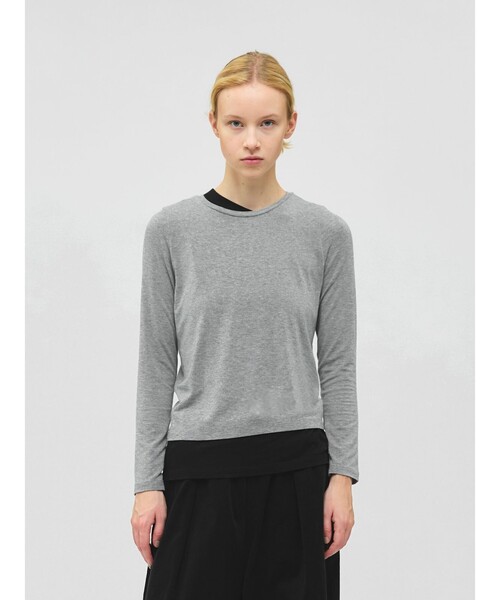 【mizuiro ind(ミズイロインド)】 身頃が二重になっており、裾と襟からインナーがのぞいているようなレイヤード風のデザインが特徴のレイヤードTシャツです。細身でシンプルなシルエットを表現したカットソーで、さらっとした生地感がポイント。ストレッチがきいており動きやすいのもポイント。袖は生地の重なりがないのですっきりとしたラインを表現します。1枚で重ね着をしているようなデザインなのでシンプルなアイテムをお探しの方にお勧めです。インナー使いにも重宝します。カラーの組み合わせもシックで落着きのある配色が魅力です。 Point 袖丈:長袖 デザイン:無地 ネック:クルーネック Detail 裏地:なし 透け感:なし 伸縮性:あり 光沢感:なし ポケット:なし ※商品画像は、光の当たり具合やパソコンなどの閲覧環境により、実際の色味と異なって見える場合がございます。予めご了承ください。 ※商品の色味の目安は、商品単体の画像をご参照ください。 こちらの商品 は mizuiro ind / MARcourt にてお取り扱いしております。 店舗在庫等については直接店舗にお問い合わせください。
