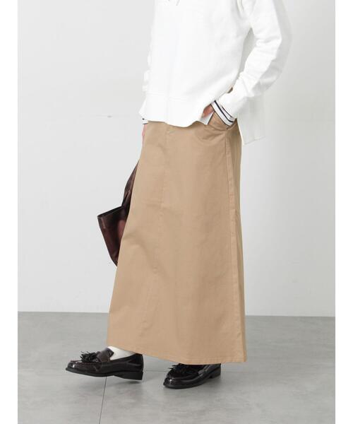 裾に向かってなだらかに広がるシルエットが魅力的なチノスカート。ウエストにはベルトループが付いているので、ベルトを巻いてお好みのサイズに調整することができます。バックに施されたスリットが後ろ姿のアクセントに。どんなトップスにも合わせやすく、着回しの幅が広がるアイテムです。※商品画像は、撮影環境やお客様のご利用のPC・スマートフォンのモニター環境などにより実物と色味に差異がある場合がございます。★《お気に入り登録》でお得な情報をGET★① 商品ページ内のハートマークをクリック!② 以下通知が受け取れます!「再入荷」「ラスト1点」「特別セール」etc..\ブランド、ショップのお気に入りも是非!/