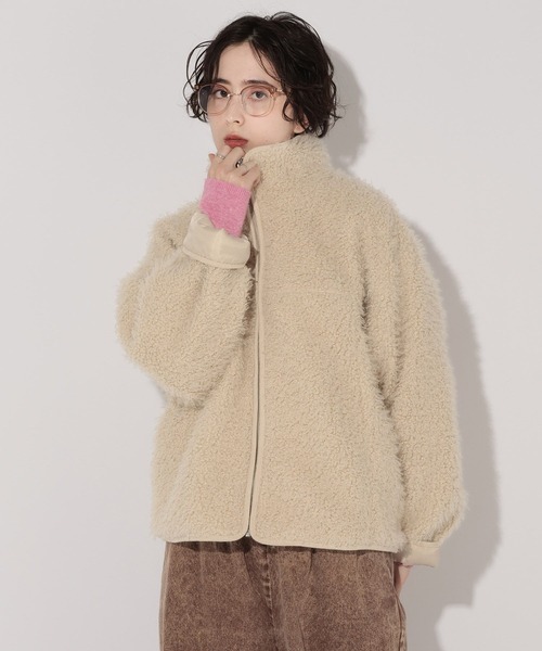プードルボアスタンドネックブルゾンです。 ■DESIGN ・スタンドネックデザインのブルゾン ・ゆったりとした身幅で、リラックス感のあるシルエット ・お尻に被る着丈で、暖かく安心感のあるシルエット ■FABRIC ・プードルのような細かいくるくるとしたシャギーボアを使用し、キャッチーな印象に ・ポリエステル100%なので軽くて着やすい ■STYLING ・スウェットパンツと合わせると、トレンド感のあるスポーツMIXスタイルに ・インパクトのあるアウターなので、ジップを閉じてトップス風に着てシンプルなボトムを合わせるのも◎ ※サンプルにて撮影をしておりますので、実際の商品とは仕様や加工・サイズ等が若干異なる場合がございます。 ※屋外の光や照明の当たり具合で、実物と色味が異なって見える場合がございます。詳細画像の色味をご確認ください。 なお、商品の色や質感を出来るだけ忠実に再現するよう心掛けておりますが、パソコンなどの環境により、実物と若干異なる場合がございます。 ※写真を許可無くコピー・転用することは固くお断りします。