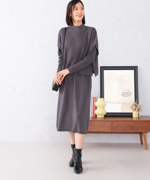 上品なレイヤードを楽しめるポンチョつきニットワンピ【機能/素材】柔らかく暖かいニット素材。セットのトップスにはケーブル柄入りで、上品なトラッド感をプラスしました。【デザイン】きれいめなニットワンピースと、ケーブル柄ニットポンチョのセット。それぞれ別のアイテムともコーディネートでき、着こなしの幅が広がります。【お勧めスタイリング】ただのきれいめスタイルでは物足りない日におすすめ。ニットポンチョは、カジュアルなデニムなどとも相性抜群です。【GALLORIA /ギャロ―リア】ベーシックだけじゃ物足りない、ほどよくトレンドを取り入れ シーンレスにきちんと見える。そんな願いを叶えてくれる、いまの空気感をまとった大人のデイリー服「GALLORIA」買いやすいプライスで、バリエーション豊富に揃うライフスタイルに寄り添うコレクションを展開します。◆Instagram:@galloria.sns公式Instagramでは最新情報を定期的に更新中!フォローしてお得な情報をゲット!■商品のお気に入り登録のおすすめ■完売カラーの再入荷通知、ラスト1点、お得なクーポンやお値下をお知らせします。■ブランドのお気に入り登録のおすすめ■新商品や再入荷のお知らせ等、ブランドのお得なクーポンやお値下をお知らせします。