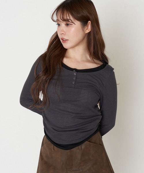 \1枚でレイヤードスタイルが完成/ 冬アウターのインナーにもピッタリなロンTが登場 ー 商品コメント ー ・首元と裾、袖がレイヤードのデザインなので、シンプルながらもサマになる1着です。 ・柔らかい生地が身体に馴染むので、冬アウターに合わせるトップスとしてもオススメ◎ ・サイドにギャザーが入るので、着瘦せ効果も抜群。 ・腰丈なので、身長問わず着やすい丈感です。 ー スタイリングポイント ー ・ボリュームのあるボトムスと合わせるとメリハリのあるシルエットに◎ ・冬アウターや、カーディガンのインナーとしてもオススメです ー 洗濯表示・お取り扱いについて ー 洗濯:家庭用洗濯機可(30度限度) タンブル乾燥:不可 アイロン:110度まで ※着用・お取り扱いの際は商品についている品質表示とアテンションタグを必ずご確認ください。 【製品のご注意】 ・色落ちすることがありますので、他のものと分けて洗濯してください。 ・洗濯の際多少縮むことがあります。 ・汗や雨等で濡れた時や摩擦により。他の衣類や持ち物等(特に白)に色移りする可能性がございますので、十分ご注意ください。 ・蛍光増白剤入りの洗剤を使用しないでください。 ・金属付属釦は過度な引っ張りや衝撃が加わることで破損することがありますので、ご注意ください。 ------------------------------ ◆お気に入り登録について◆ 気になるアイテムは♡を押して、お気に入り登録がおすすめです。 お気に入り登録をするとこんなメリットが! ⇒商品のお気に入り登録 商品の再入荷や、ラスト1点通知、お得なセール情報など特別な通知を受け取ることができます。 ⇒ブランドのお気に入り登録 新商品や再入荷、クーポン配布などお得なブランドの情報をいち早くお知らせいたします。 気になるアイテムを一覧で見ることができます。 お買い物リストとしてぜひご利用下さい。 ------------------------------ 〈 RAY CASSIN / レイカズン 〉 Chicoの姉妹ブランドのRAY CASSIN モードとストリートのファッションの中に感じる洗練さ。 RAY CASSINは常に新しいものを求める方に向けた トレンドと自分らしさを表現できるブランドです。 〈 Attention 〉 〇商品について ・商品画像はサンプル品を使用しているため、実際の商品と仕様、加工、サイズが若干異なる場合がございます。 ・商品の色味は、撮影場所や光のあたり具合などにより色味が違って見える場合がございます。 また、お客様のお使いのPCのモニター環境などにより色味が違って見える場合がございます。予めご了承ください。 ・キャンペーンやフェアにより価格が変動する場合がございます。 ・セールは予告なく終了させていただく場合もございます。 〇返品・キャンセルについて ・着用、洗濯後の返品、交換は致しかねます。 ・商品到着後、着用前に商品の状態を確認して頂きますようお願い致します。
