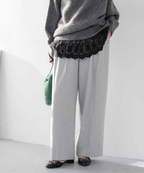 \着痩せも暖かさも譲らない!/ 冬の美人見えカーブパンツ【悩みに“効く”ポイント】裏起毛の機能素材で保温性を確保。 寒い冬も暖かく過ごせるのに、着ぶくれせずスッキリ見えます。程よいリラックス感のあるシルエットが、 気になる脚のラインを拾わずにキレイにカバーします。ディテール: 裾にかけてのさりげないカーブが あか抜け感をプラスし、穿くだけでこなれた印象に。 ウエスト配色ゴムが遊び心あるアクセントです。サイズ感: ウエストタック&イージー仕様で、ノンストレスなはき心地を実現しました。【MATERIAL & FUNCTION】しなやかで暖かみのある素材感。ポリウレタン配合でストレッチ性もあり、動きやすい快適な着用感です。[素材] ポリエステル66% / レーヨン31% / ポリウレタン3%[着心地] 裏起毛なのに軽く、しなやかな心地よさ。【スタイリング】抜け感のあるVネックニットと合わせ、 ハンサムで洗練された印象に。ざっくりニットやシャツと合わせ、 足元はスニーカーでカジュアルにも◎【商品の取り扱いについて】お手入れは洗濯機洗いが可能です。 ご自宅でのケアは洗濯ネットをご使用ください。------------------------【お気に入り登録のおすすめ】■商品のお気に入り(♡)登録┗完売カラーの再入荷通知や、完売間近の通知、ZOZO店のみのセールなどの通知を受けることができます。■ショップのお気に入り(♡)登録┗新商品や再入荷など、いち早くブランドのお得な情報を受け取ることができます。------------------------