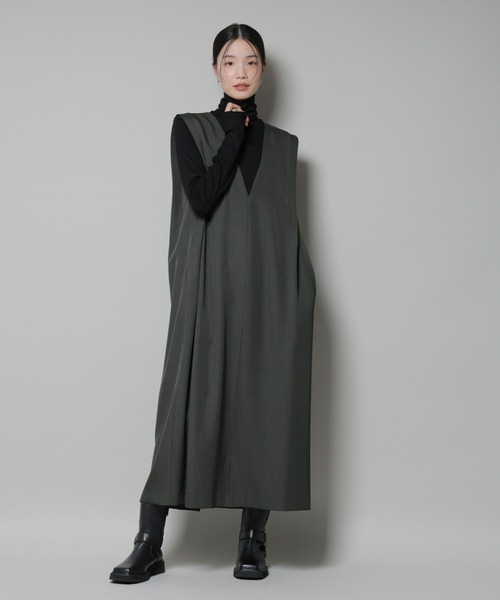 【2025 AW】NANO universe(ナノ・ユニバース)『ショルダータックから繋がる構築的なシルエット』シンプルながらショルダー部分のタックが存在感のあるジャンパースカート。深めのVネックデザインが上品で大人っぽい印象の一着。インナーやアウター次第で幅広い着回しを楽しめます!■デザイン・ショルダータックがポイントのジャンパースカート・抜け感がありレイヤード映えする深めのVネックデザイン・身体のラインを拾いすぎず縦に落ちるすっきりシルエット・足さばきしやすい後ろ裾スリット入り■素材・手洗いに対応したウォッシャブル素材■カラー展開・オンオフで着回し万能なチャコール、ベージュ・深みのある大人グリーン■コーディネート・インナーにカットソーやニットを合わせたり、上からジャケットやニットカーディガンを羽織ったり、幅広いレイヤードスタイルを楽しめる一着・ブラウスやシャツをインナーにジャケットを羽織って通勤スタイルにも〇■取扱方法色物(特に濃色)と白物・淡色物は分けて洗ってください。ネットを使用してください。あて布を使用してください。濡れたままの放置や、長時間の浸漬はしないで下さい。※サンプルにて撮影、採寸を行う為、実際にお届けする商品と仕様やサイズが異なる場合がございます。予約時は生産の都合上、お届け予定時期が前後する場合もございますので、予めご了承下さい。※光の当たり具合や撮影環境により色味が異なる場合がございます。正しい色味はスタジオ画像の色味をご参照ください。※こちらの商品は、アウトレット店舗での取り扱いになります。直接店舗へお問い合わせの際はアウトレット店舗へお願い致します。プロパー店舗での取り扱いはございませんので、ご了承ください。※サイズスペックは、ブランドの採寸方法で表記している場合がございます。予めご了承ください。▼商品のお気に入り登録お気に入りアイテムの再入荷や残り1点の通知を受け取ることができます。▼ブランドのお気に入り登録新作アイテムの入荷や人気アイテムの再入荷、タイムセールやクーポンなど、いち早くブランドのお得な情報を受け取ることができます。