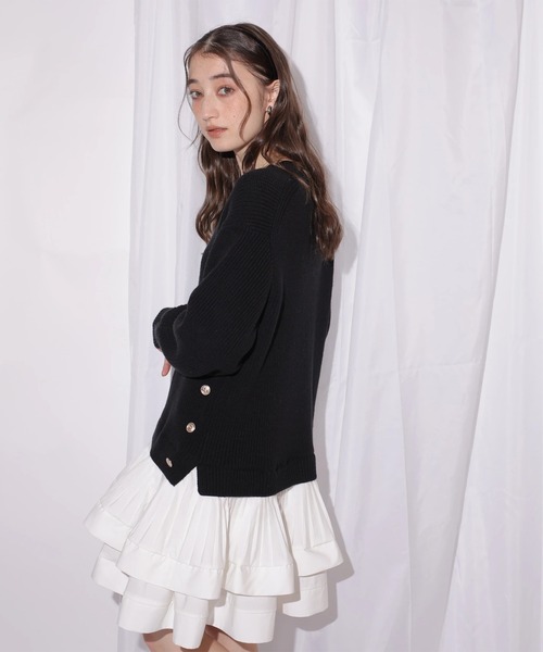 ふんわりとしたニットとティアードスカートをドッキングした、1枚でコーデが完成するチュニックワンピース。ゆるやかなシルエットが抜け感を演出し、裾のフリルが華やかさをプラス。ロングブーツでバランスよく仕上げたり、細身パンツを合わせた大人カジュアルもおすすめです。【ご注意】※撮影照明の関係により、実際の商品と色味が異なって見える場合がございます。また、パソコン・スマートフォンなどの環境により、製品と画像のカラーが異なる場合もございます。予めご了承ください。※商品画像はサンプルのため、色味やサイズ等の仕様に変更がある場合がございますので、予めご了承ください。