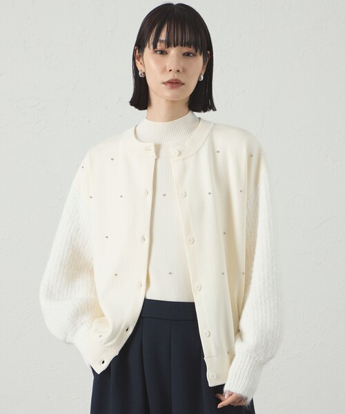 【CAST:キャストコロン 2025年秋冬アイテム】 【Design】 散りばめられたスタッズが特徴のニットカーディガン。 袖部分と身頃の編地を変化させることで、さらに華やかさをプラスしました。 モードな印象に仕上がるよう、スタッズが等間隔でデザインされています。前のボタンを留めてプルオーバーのような着方もおススメです。 ※56カラー(ブラウン)はオンラインストアとLOVELESS店限定です。ボタンの仕様が他のカラーとは異なりますのでご注意ください。 【Fabric】 (本体)光沢感と暖かみのある表面感が特徴で、合繊素材のため耐久性にも優れたニット素材です。(袖部分)程良い厚みと起毛感のあるニット。合繊素材のためイージーケア性も兼ね備えており、お家で洗濯可能です。 【Styling】 ベーシックなシルエットなので、どんなボトムスとの相性も抜群です。1枚でサマになるニットです。 ●洗濯:手洗い可 透け感:なし 伸縮性:あり 生地の厚さ:普通 おすすめ着用期間:春、秋、冬 ※この商品はサンプルでの撮影を行っています。 実際の商品とイメージ、サイズ、品質表示、原産国等が異なる場合がございます。 ※店頭及び屋外での撮影画像は、光の当たり具合で色味が違って見える場合があります。商品の色味は、スタジオ撮影の画像をご参照ください。