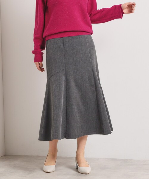 【デザイン】マーメイドシルエットが美しいクラシカルなヘリンボーン柄スカート。秋冬のニットアイテムとの相性も◎秋冬らしいクラシカルなコーディネートにぴったりのヘリンボーン柄スカート。ソフトマーメイドシルエットで曲線的な美シルエットながらも、絞り過ぎていないラインなので着やすくなっています。歩くたびふわりと揺れる裾のラインが足元をエレガントに演出。ウエスト部分には配色のテープをあしらい、さり気ないアクセントをオン。後ろウエストはゴム仕様なので着脱しやすくサイズカバー力も◎【素材】先染めのヘリンボーン柄生地。C/#114はフロッキードットプリント【仕様】・ポケットなし・ウエスト後ろゴム・裏地あり※照明の関係により、実際よりも色味が違って見える場合があります。また、パソコン・スマートフォンなどの環境により、若干製品と画像のカラーが異なる場合もございます。----------------------------------------★お気に入り登録がおすすめ★▽気になる商品はハートマークをクリック!・再入荷やセールの通知をお知らせ・お気に入り一覧からいつでもチェック▽ブランドのお気に入り登録も!・新商品やお得な情報をいち早くお知らせ----------------------------------------モデル情報:身長163cm B78 W57 H84 着用サイズ:00(フリーサイズ)店舗へのお問い合わせ商品番号:P93-64511●製品寸法:00(フリーサイズ):W62~66cm H88cm 総丈79cm備考:
