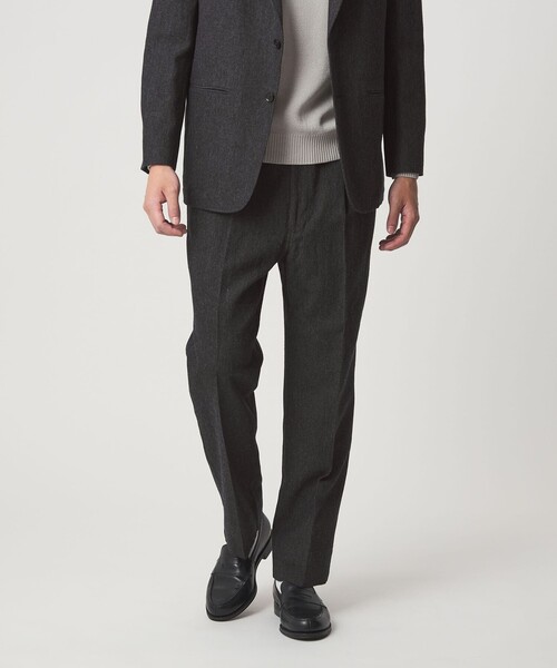 カジュアルモダンな遊び心のあるイージーパンツ ■デザイン ・ゆとりのあるシルエットのクリーズ入りドレスイージーパンツ ・すっきりとした裾シングル仕上げ ・ベルトループなし ・ウエストゴム、ドローコード付き ■素材 ・尾州の毛織物メーカーによる毛×麻ブレンドの日本製生地 ・こだわりの起毛感のあるデニムライク素材 ■コーディネート 同素材ジャケットとのセットアップスタイリングがおすすめです。 インナーにはニットなどが好相性。 単品のパンツとしても使いやすく、ジャケットのみならずカジュアルなブルゾンなども◎です。 大人リラックスなパンツとして活躍する一本。 ・同素材のセットアップジャケットのご用意もございます。対象品番:31221451747 ============================ 透け感:なし 伸縮:なし 光沢感:なし ============================ 【注意事項】 ※商品に「取り扱い上の注意書き」、「洗濯表示」がございます場合は、使用前に必ずご確認ください。 ※商品画像は、光の当たり具合やパソコンなどの閲覧環境により、実際の色味と異なって見える場合がございます。あらかじめご了承ください。 ※商品の色味の目安は、商品単体の画像をご参照ください。 店舗へお問い合わせの際は、全国のgreen label relaxing各店舗まで下記の品名/品番をお申し付けください。 品名:DC W/LIデニムライク ESYワイド1P 品番:31141451747