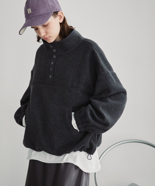 スナップボタンでネックアレンジが楽しめる◎ ゆるっとシルエットで柔らかなフリース素材プルオーバー ■design 低めに広く開いたスタンドカラーがポイントのフリースブルゾン。 そのままのハイネックではもちろん、襟を大きく開けて シャツやタートルニットなどの覗かせたレイヤードスタイルなど幅広くアレンジの着こなしを楽しめるアイテム。 身幅にゆとりがあり、リラックス感のあるシルエットでデイリーに着まわせる一枚です。 両サイドにポケット付き・裾にドロップコード付きでゆとりも調節可能な万能デザイン。 ■material 保温性が高いフリース素材 チクチク感がなくやわらかな肌触りです ■styling シンプルでボトムスを選ばずテイストレスに着用できます。 首元からインナーを見せたレイヤードスタイルもおすすめです。保温性に優れているため、寒い時期の防寒アイテムとしても◎ 透け感:なし 光沢感:なし 伸縮性:あり 裏 地:なし 厚 み:普通 フリース/スナップボタン/ハイネック/冬服 --------------------------------------------------- ▶商品のお気に入り登録 完売カラーの再入荷通知やラスト1点の通知など お得なプライスダウンの情報も受け取ることができます。 ぜひご登録ください◎ ▶ブランドのお気に入り登録 新商品や再入荷など、ブランドの最新情報を いち早くお知らせします! ぜひご登録ください◎ --------------------------------------------------- ※撮影環境の光や角度により、実物と色味が異なる場合がございます。 また表示のサイズ感も実物とは若干異なる場合もございますので、予めご了承ください。 ※着用、お取り扱いの際は、商品に付いている品質表示を必ずご確認ください。
