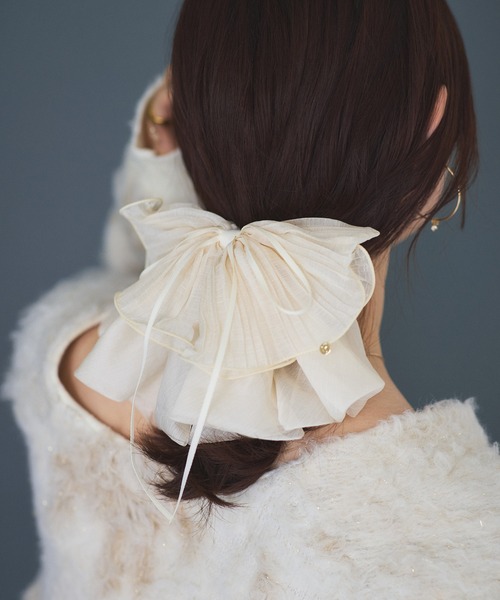 【2025 Autumn/Winter】【25AW】<POINT>・2種類の生地をレイヤードすることで華やかなボリュームを演出してくれます。・クリップを髪の結び目に留めるだけで簡単にきまります◎・シーズンレスで使えるのも嬉しいポイント。【カラー】ブラックとアイボリーの2色展開です。【おすすめのスタイリング】お食事やデート、パーティーシーンのワンポイントにおすすめです。※画像の商品はサンプルです。 実際の商品と仕様、加工、サイズが若干異なる場合がございます。