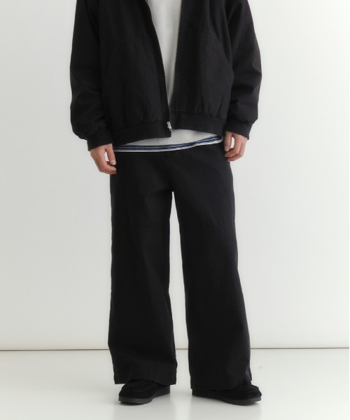 構築的なディテール&高耐久素材で、ワークスタイルを洗練させた万能パンツ。【仕様】ワークウェア由来のディテールをモダンにアップデートしたコットンダックワークパンツ。ハイウエスト×太めのワイドレッグがスタイルアップ効果を叶え、膝位置の切り替えステッチがメリハリのあるシルエットを演出します。斜めのフロントポケットとバックのパッチポケットは見た目にも実用性にも優れており、シンプルながらディテールへのこだわりが光る一本です。【素材感】厚手ながら程よいハリのあるコットンダック生地を使用することで、美しいシルエットをキープ。経年変化で柔らかく馴染む素材特性があり、使い込むほどに味わい深くなります。さらに、通気性が良いため年間を通して快適に着用でき、お手入れも簡単でデイリーユースにぴったりです。【スタイリングイメージ】シンプルなTシャツやリブニットをタックインして、ハイウエストデザインを活かしたスタイルがおすすめ。オーバーシャツを羽織ればトレンド感がプラスされ、ショートジャケットを合わせると洗練された印象に。足元はスニーカーでカジュアルにまとめたり、レザーシューズと合わせてきれいめスタイルにも対応可能です。【おすすめポイント】・ハイウエスト×ワイドレッグがスタイルアップ&トレンド感を演出・厚手のコットンダック素材で丈夫&シルエットを美しくキープ・年齢や性別を問わないシンプルながらモダンなデザイン【こんなシーンにおすすめ】・休日のショッピングやカジュアルなお出かけスタイルに・アウトドアやアクティブなシーンで頼れる高耐久パンツとして・通勤やオフィスのカジュアルデーにも合わせやすい1着■スタッフ着用コメントMENS(173㎝/XLサイズ)ダック素材のワークパンツは太めのシルエットとダブルニーのようなデザインのボトムです。ワークパンツなのにゴワゴワしなく履きやすいのがGOODですね👍【セットアップで着用可能なアイテムはこちら】商品名:コットンダックフード付きブルゾン/セットアップ対応問い合わせ番号:100262673(ZOZO)BN25201600097(店舗)ーーーーーーーーーーーーーーーーーーーーーーーーーーーーお得に&便利にお買い物を楽しむポイント♪▶商品のお気に入り登録( ♥ハートマーク をクリック)お気に入りアイテムの完売カラーの再入荷通知や、ラスト1点の通知、セールなどの情報をいち早くお届け。▶ショップ・ブランドのお気に入り登録新商品や再入荷、クーポン配布などお得な情報を随時お届け。ーーーーーーーーーーーーーーーーーーーーーーーーーーーー