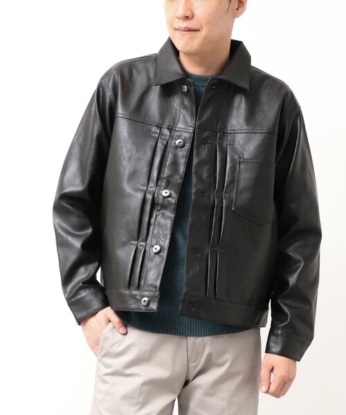 定番のトラッカージャケットをアップデート無骨さと上品さをあわせ持つ1枚◆素材・軽く着心地の良いヴィーガンレザーを使用・水洗い可◆デザイン・カジュアルになりがちなトラッカージャケットをレザー素材で上品に・肩廻りにはややゆとりをもたせつつ、スッキリとしたサイズ感◆スタイリング・Tシャツに羽織るだけで様になる・スウェットやシャツなどインナーを選ばず羽織りやすい・デニムやチノパン合わせはもちろん、スラックスを合わせたキレイめスタイルもおすすめ※この製品は縫製後、製品洗いをしています。そのため多少の歪み、シワなどが見られたり、風合いやサイズ等が1枚1枚異なります。汗や雨等で濡れた時や、摩擦により色落ちし、他の衣料を汚すことがありますので(特に濃色のもの)ご注意ください。ー・ー・ー・ー・ー・ー・ー・ー・ー・ー・ー透け感:なし裏地:あり伸縮性:あり(表地)光沢感:あり生地の厚さ:普通ー・ー・ー・ー・ー・ー・ー・ー・ー・ー・ー★気になるアイテムは【お気に入り登録】がオススメです!入荷情報やクーポン、セール情報が通知されるようになります。【お取扱い上のご注意】末永くご愛用頂くために、アテンションタグを必ずご確認の上、着用又はお取り扱い下さい。※店頭及び屋外での撮影画像は、光の当たり具合で色味が違って見える場合があります。商品の色味は、スタジオ撮影の画像をご参照下さい。※商品画像に関しては出来る限り忠実に表示出来るよう努めておりますが、お客様がご利用のモニターの設定及び特性により、実際の商品と比較し色味に若干の誤差が生じる場合があります。※画像の商品はサンプルとなりますので実際の商品と仕様、加工、サイズが若干異なる場合がございます。※製品洗い加工の商品は、多少の歪み、シワなどが見られたり、風合いやサイズ等が1枚1枚異なります。汗や雨等で濡れた時や、摩擦により色落ちし、他の衣料を汚すことがありますので(特に濃色のもの)ご注意ください。