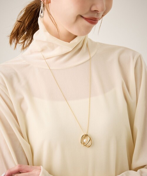 どの角度から見ても美しく、胸元で印象的な存在感を放つデザイン。【デザイン・シルエット】 ・歪なリングが重なり合ったような、有機的でモダンなデザインのペンダントトップ。 ・メタルの中に、一粒のパールをあしらうことで、上品さと華やかさを両立。 ・異素材の組み合わせが、コンテンポラリーで洗練された雰囲気。 【カラー】 ・ゴールドとシルバーの2色展開。 【スタイリングポイント】 ・シンプルなトップスやワンピースに合わせるだけで、こなれ感がアップ。 ・カジュアルなカットソーや秋冬のニットの上に重ねても、縦のラインが強調され、洗練された印象に。 ※撮影時の光、お使いのモニター環境によって色の見え方が違う場合がございます。