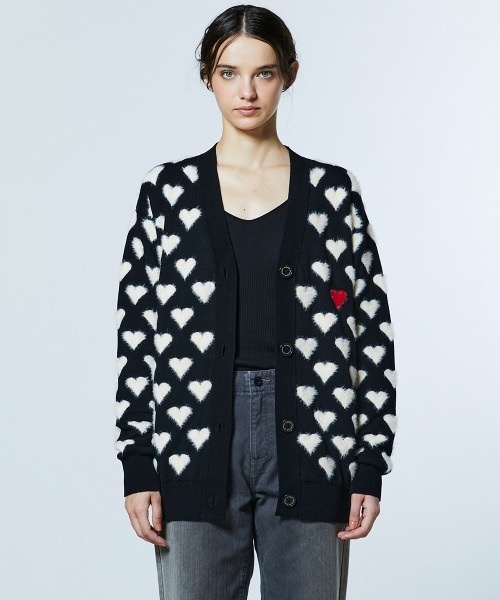 毛足の長いシャギーモールで小さなハート柄を表現した、キュートなカーディガン。左胸の一箇所を赤いハートにすることで、さりげない遊びごころを添えました。キャッチーなデザインながらも、モノトーンベースで甘くなりすぎず大人っぽい印象に。ゆったりとしたシルエットで、デニムにもスカートにも合わせやすく、着こなしの幅が広がります。※商品画像はサンプルのため、デザイン、素材(混率等)、色味やサイズ等の仕様に変更がある場合がございますので、予めご了承ください。【お買い物を楽しみいただくためには】◆商品お気に入り登録完売カラーの再入荷通知や、ラスト1点通知、セールの通知など受け取ることができます。◆ブランドお気に入り登録新商品や再入荷など、いち早くブランドのお得な情報を受け取ることができます。