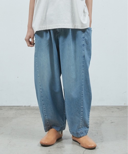 Dulcamara 2026 S/S COLLECTION 10ozの軽めのデニムを使用し、春夏に履きやすいデニムパンツに仕上げした。 着古したようなビンテージ感のあるデニムの表情も魅力です。 まるみをおびたワイドシルエットながら、テーパードをきかせて上品な印象にまとめました。 サイドには収納力たっぷりのポケットをデザインした、立体感のあるフォルムが特徴です。 ブランドのアイコン的ディテール、小さなポケットもデザインしました。 他にはないデニムの表情をぜひスタイリングに取り入れてくだださい。 Men's Model / KAZUKI H183 着用サイズ2 Ladies' Model / AYA WATANABE H167 着用サイズ0。 Dulcamara 2026 S/S COLLECTION 繊維をよりあわせて紡がれていく糸。多種多様な糸の表情を閉じ込めたオリジナルファブリックを今季も展開。 生地をつなぎ合わせる縫い目=ステッチをアートワークにように描いたデザインや、 清涼感のある着心地が特徴のサマーニット、吸水速乾、UVカットなど機能性を高めたドライポリ、 やわらかく滑らかな肌触り美しいドレープが特徴のキュプラ生地、上品なスタイルで人気のよそいきシリーズを展開。 ゆったりとしたブランドらしいシルエットと、幅広いアイテムを組み合わせてつくるスタイリングコーデをお楽しみください。 ANLIO OFFICIAL、ZOZOTOWN にて在庫発売いたします。 ANLIO OFFICIAL→会員10%割引 ZOZOTOWN →paypay、ZOZOポイント 各ショップによりサービス内容が異なります