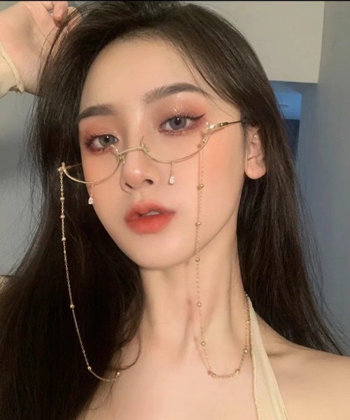 ビジューがゆらゆら揺れるトレンドのアンダーリム♡ アンダーリムのメガネ。ビジューとチェーン付きでセクシーに! Y3Kや韓国ストリートのコーデにプラスして。 こちらはレンズ無しの仕様になります。 ※モニター・環境等により実際の商品と多少色味が異なって表示される場合がございます。あらかじめご了承ください。 ※海外輸入品のため、商品の入荷時期によって色合い、生地、デザイン等に若干の違いがございます。 商品の細部仕様は予告なく変更になる場合がございます。