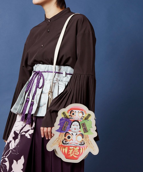 日本の縁起物や祝いものを詰め込んだ、賑やかな『開運来福』ショルダーバッグ。インパクト大なデザインで、普段使いはもちろん、日本のお土産としてもおすすめです。・ショルダー紐は長さ調節可能、取り外し可能。・内側の色味は全カラー同色です。●その他1【だるま】七転び八起き。達磨(ダルマ)の赤は、魔除けの意味が込められています。●その他2【犬張子】笑門来福。安産や子どもの健康を祈願するお守りとして愛されています。●その他3【招き猫】福を招く幸運の猫。◆カヤ◆古くから伝わる日本の伝統と新しい文化の融合。「新しいカタチの日本」に出会える倭物ブランド【カヤ】「文明開化」をテーマに、倭モダンで色彩あふれる刺激的な和雑貨を提案していきます。※こちらの商品は1点1点職人による手作りとなります。その為、形や色合いなど若干異なる場合がございます。あらかじめご了承ください。Amina Collection Co.,LTD.